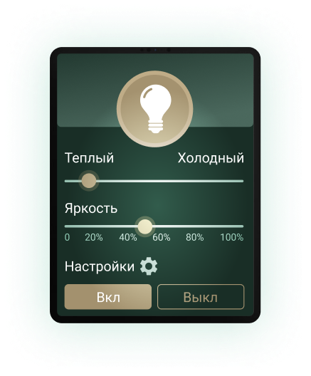 Работа осуществляется на базе центрального контроллера, который принимает сигналы со всех подключенных устройств: датчиков, выключателей, актуатров, и отправляет полученные данные на интерфейс приложения.